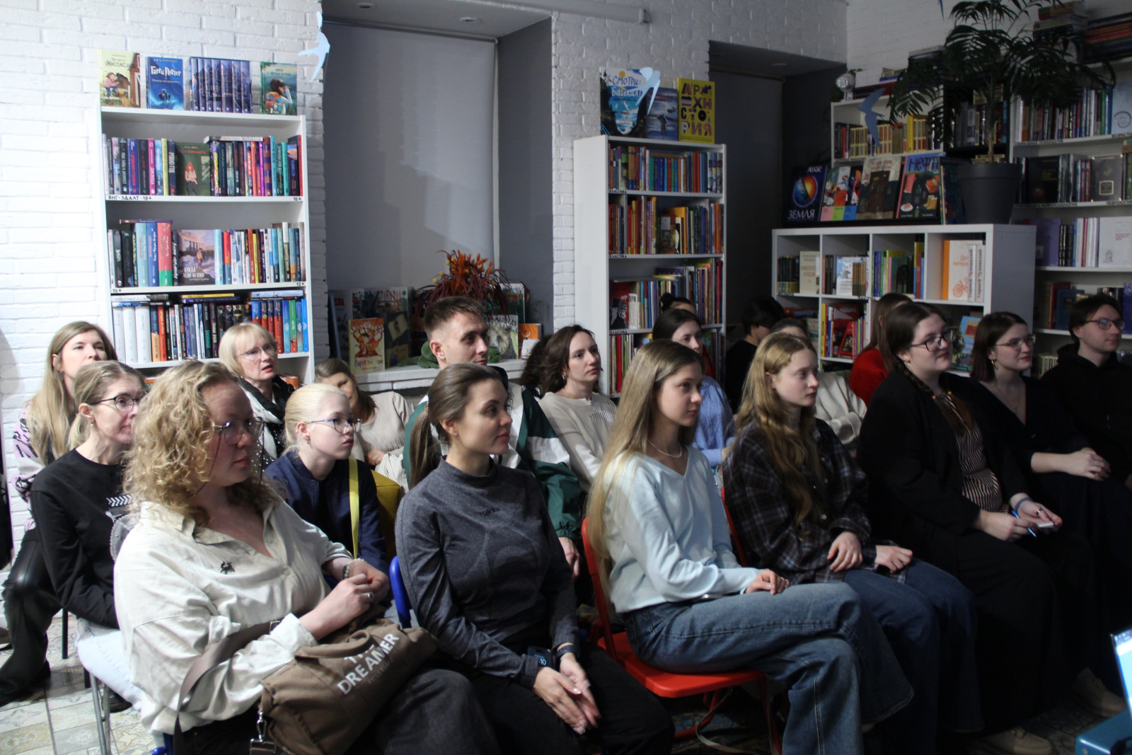 Завершился вечер «Научными чтениями». Вероника Головчиц, театральный журналист, блогер, автор каналов «Мемуары с бенуара» и «Прочитано-продано» рассказала о книге Марис Уикс «Театр человеческого тела», из которой читатели могут узнать, как устроено тело человека, как работают все его органы: от клеточного уровня до уровня систем. Анастасия Иванова, менеджер ИЦАЭ Красноярска, подготовила в качестве рекомендации две книги, которые рассказывают о женщинах в науке: «52 упрямые женщины» Рэйчел Свейби и «Женщины в науке. 50 женщин, изменивших мир» Рэйчел Игнатовски.