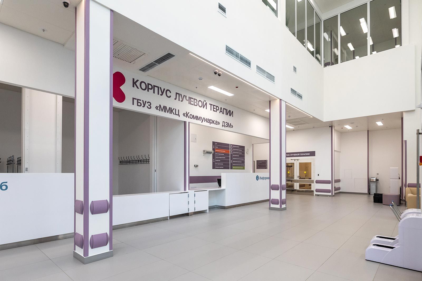 Отделение лучевой терапии оснащено уникальным комплексом из трех линейных ускорителей для выполнения сверхточной дистанционной 3D- и 4D-лучевой терапии. Имеется диагностический блок с аппаратами компьютерной и магнитно-резонансной томографии (КТ и МРТ) для составления индивидуального плана лечения, в том числе для подготовки к проведению лучевой терапии, а также блок близкофокусной рентгенотерапии, где лечат поверхностно расположенные опухоли, например новообразования кожи, и блок брахитерапии — это метод лучевой терапии с использованием радиоактивного источника, который подводится непосредственно в опухоль.