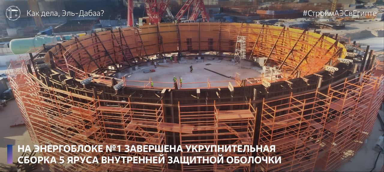 На первом энергоблоке завершена укрупнительная сборка пятого яруса внутренней защитной оболочки (ВЗО).