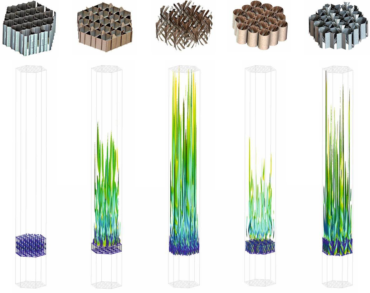 В основе малых модульных ядерных реакторов – наиболее распространенные сегодня в атомной энергетике водо-водяные реакторы (ВВЭР). Их принцип действия заключается в нагреве воды под давлением за счет контакта с тепловыделяющими сборками, имеющими сотовую структуру. Важным компонентом такой сборки является перемешивающая решетка, которая предназначена интенсификации перемешивания теплоносителя, а также снижения неравномерности теплотехнических характеристик потока. С другой стороны, на поверхности тепловыделяющий элементов (из которых состоит сборка) возникают пузырьки, которые могут привести к появлению зон кипения и перегреву. Поэтому второй задачей при модернизации перемешивающей решетки, помимо интенсификации теплообмена, является исключение этих зон кипения.