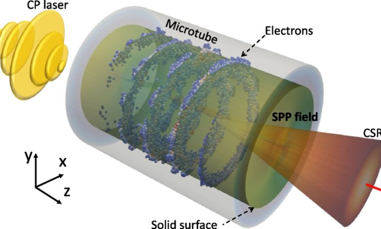 Суть разработки заключается в использовании поверхностных плазмон-поляритонов — волн, возникающих при взаимодействии лазерного излучения с поверхностью материала. Согласно проведённому компьютерному моделированию, циркулярно-поляризованный лазерный импульс, пропущенный через полую микроскопическую трубку, движется по спирали, подобно штопору. Это вращающееся поле захватывает и ускоряет электроны внутри трубки, заставляя их двигаться синхронизированно по спиральной траектории. Именно согласованное движение электронов делает их излучение когерентным, усиливая генерируемые рентгеновские лучи до двух порядков величины.