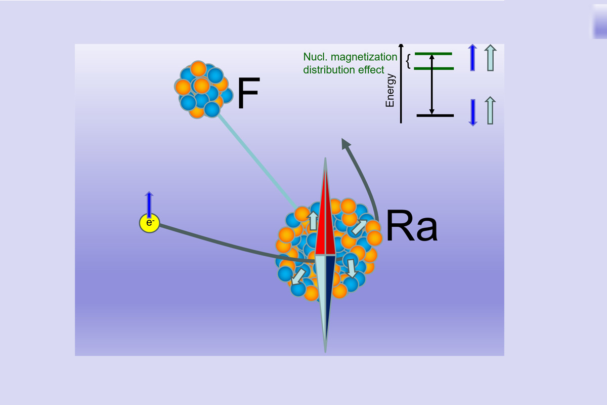 Ученые из международного коллектива CRIS Европейской организации ядерных исследований (ЦЕРН) впервые изучили проявление магнитной структуры ядра в молекуле — радий-фториде (RaF). Им удалось синтезировать молекулы, содержащие короткоживущие ядра радия-225 с периодом полураспада около двух недель, и измерить их спектр с рекордной точностью. Полученные данные сравнили с расчетами ученых НИЦ "Курчатовский институт" – ПИЯФ и Санкт-Петербургского государственного университета (Санкт-Петербург), выполненными на основе новой теории. Эксперименты подтвердили, что в молекуле действительно проявляется влияние внутреннего распределения магнитного поля в ядре, что стало прямым свидетельством эффекта Бора–Вайскопфа на молекулярном уровне.