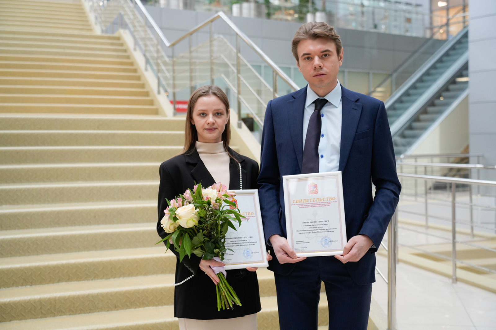 12 ноября в Доме Правительства Московской области состоялась торжественная церемония награждения победителей Премии Губернатора Московской области в сферах науки, техники и инноваций. Среди пятнадцати победителей — двое молодых ученых ОИЯИ: кандидат биологических наук, руководитель группы ЛНФ Никита Юшин и стажер-исследователь сектора ЛФВЭ Елизавета Бушмина.