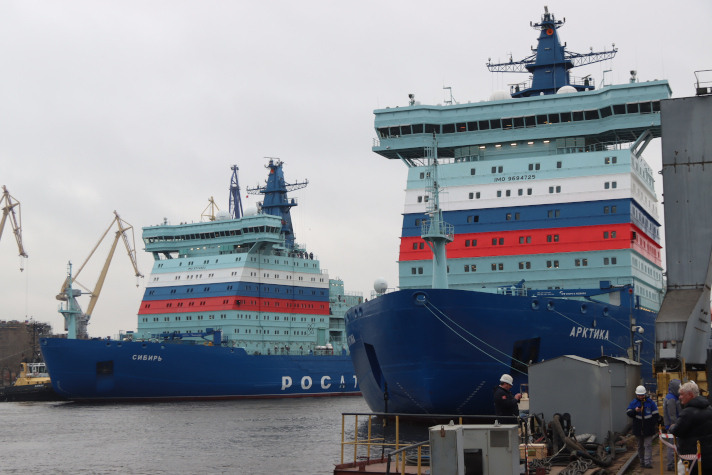 Напомним, в рамках серии проекта 22220 на Балтийском заводе ОСК в Санкт-Петербурге продолжается строительство атомных ледоколов "Чукотка", "Ленинград" и "Сталинград". На дальневосточном Судостроительном комплексе "Звезда" строится атомный ледокол "Лидер" проекта 10510.