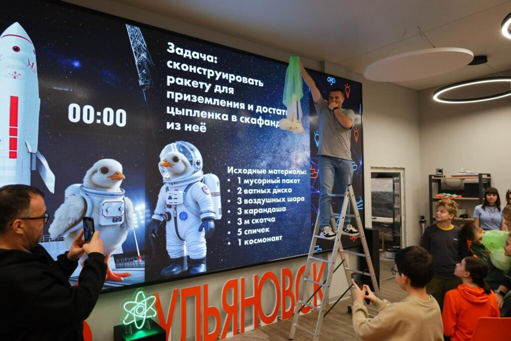 Вечер начался с мастер-класса «Ракета для цыплёнка». Участникам необходимо было решить задачу, знакомую каждому ракетостроителю: создать конструкцию, которая обеспечит мягкое приземление космонавту. В роли космонавта выступал невылупившийся цыплёнок — символический пассажир, судьба которого полностью зависела от прочности конструкции летательного аппарата.