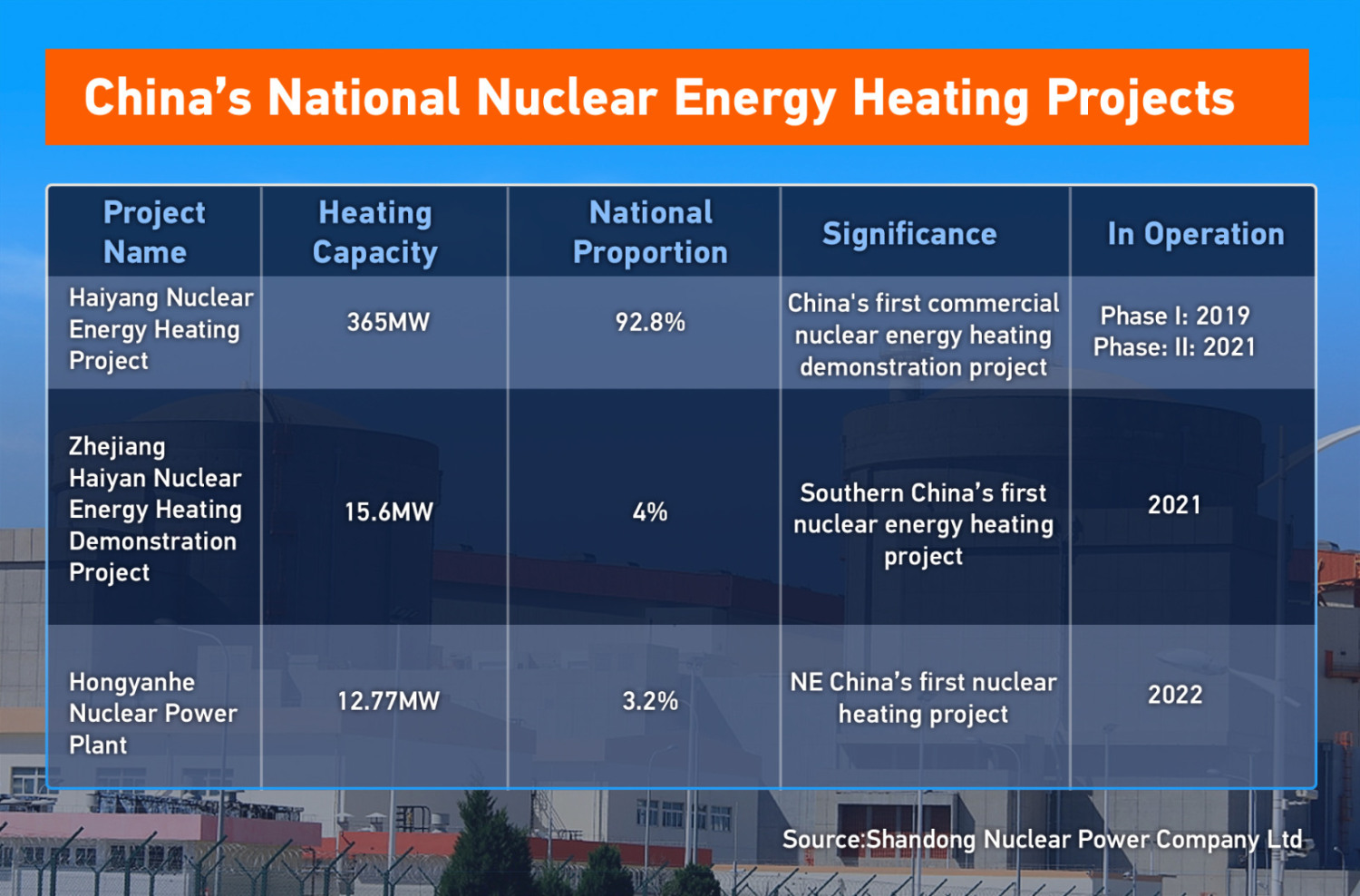 Город Жунчэн стал третьим населённым пунктом провинции Шаньдун, подключённым к системе централизованного теплоснабжения от АЭС «Хайян», сообщила корпорация State Power Investment Corporation (SPIC).
