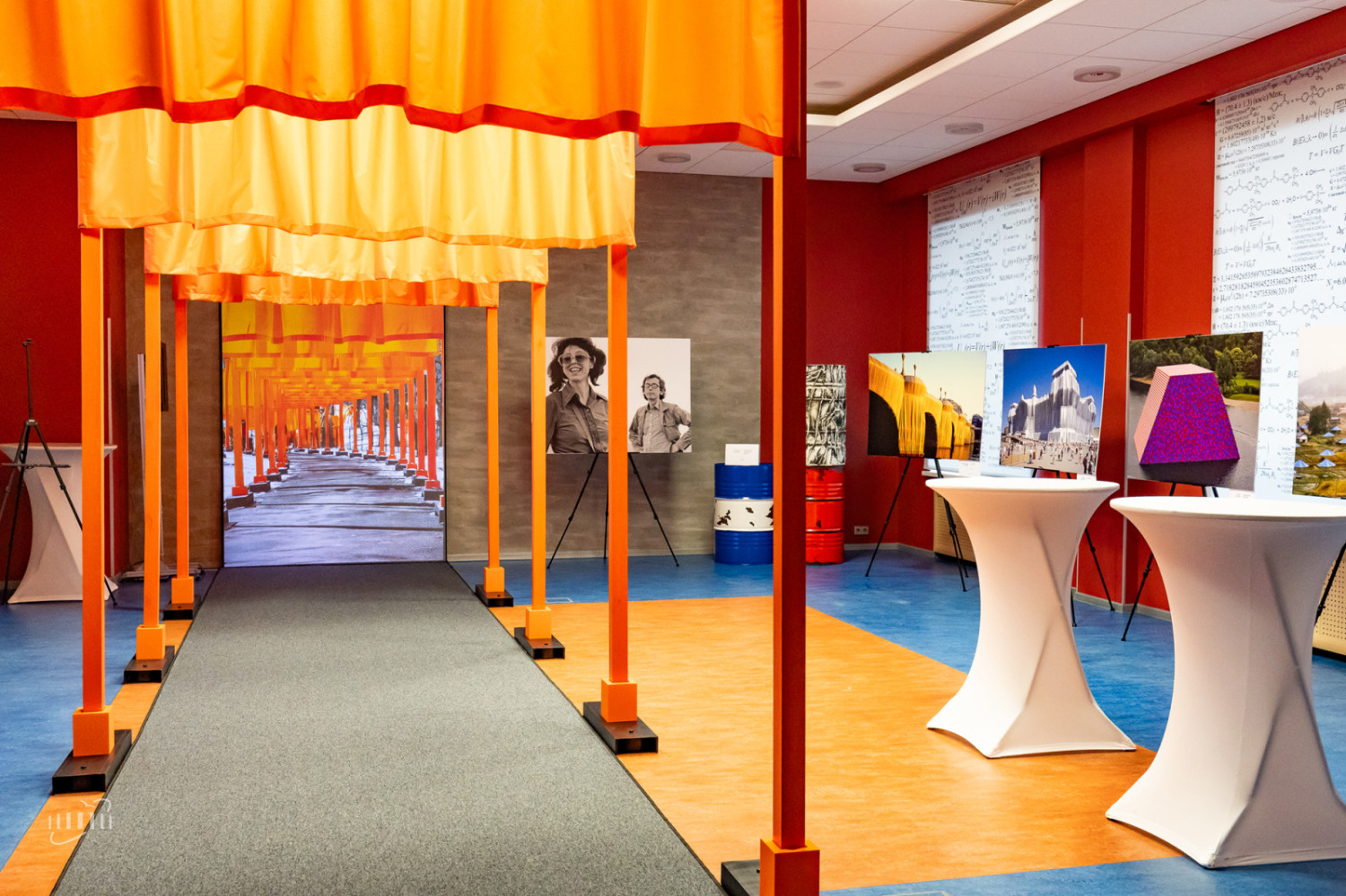 После лекции участники мероприятия получили возможность пройти через четыре уменьшенные копии ворот из Нью-Йорка, а также увидеть «нефтяные бочки», полистать книги о Кристо и Жанне-Клод, изданные на разных языках, и рассмотреть фотографии работ художников.