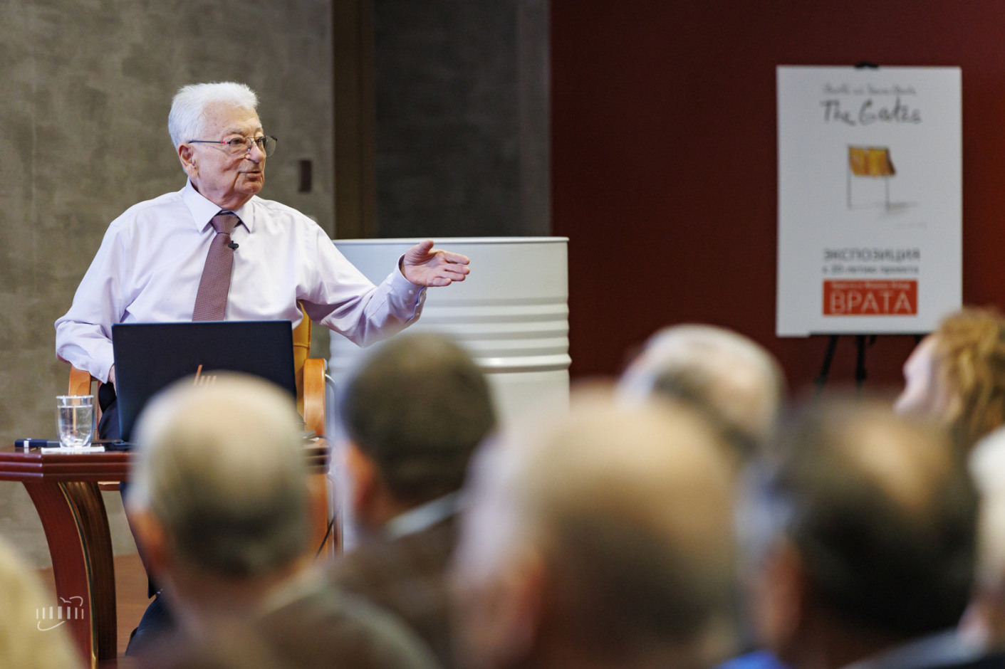В конференц-зале Лаборатории ядерных реакций ОИЯИ научный руководитель ЛЯР академик Юрий Цолакович Оганесян прочитал лекцию, приуроченную к 20-летию проекта The Gates – масштабной инсталляции, представленной в 2005 году в Центральном парке Нью-Йорка.
