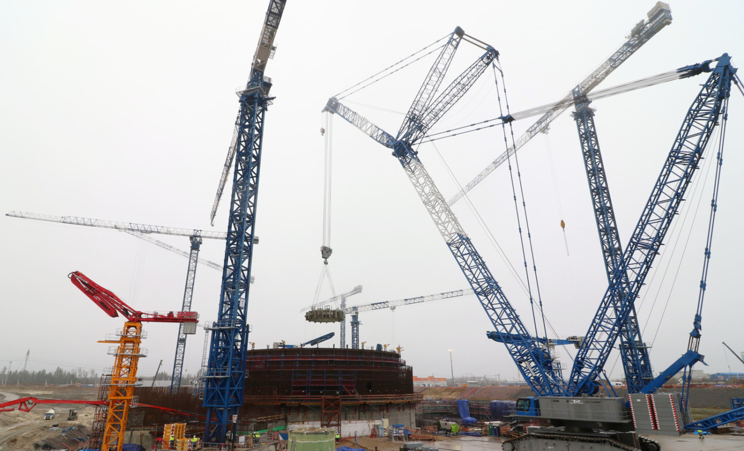 «На следующем этапе ферму-консоль дополнят необходимыми трубопроводами и датчиками контроля температуры. После этого внутренние секции фермы-консоли забетонируют специальным бетоном. Во время эксплуатации энергоблока он будет защищать персонал и строительные конструкции шахты реактора от воздействия повышенной температуры и нейтронного и гамма-излучения. Последний элемент устройства локализации расплава, плита нижняя, займет свое место в шахте реактора к началу лета следующего года».