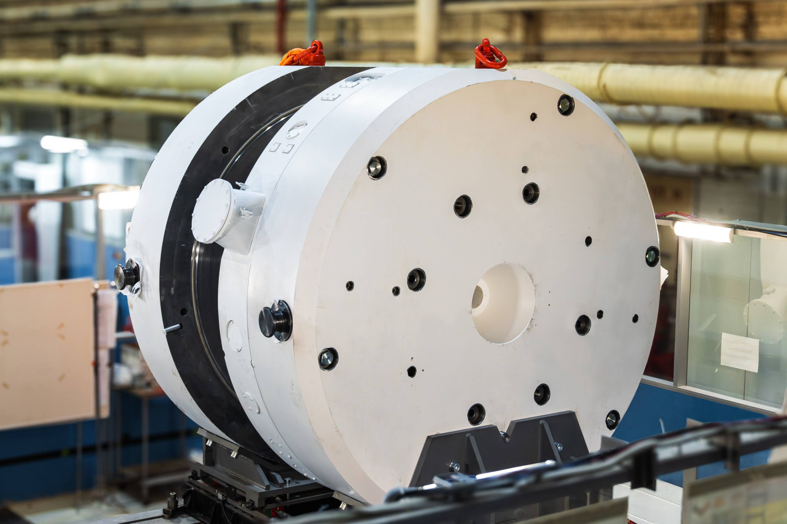 Электромагнит является основной частью циклотрона и базовой единицей, со сборки которой начинаются заводские испытания. Сейчас проходит установка в магнитопровод основных катушек, изготовленных на опытном заводе ЭФО. После размещения электромагнита на опору начнется подготовка к измерению магнитного поля.