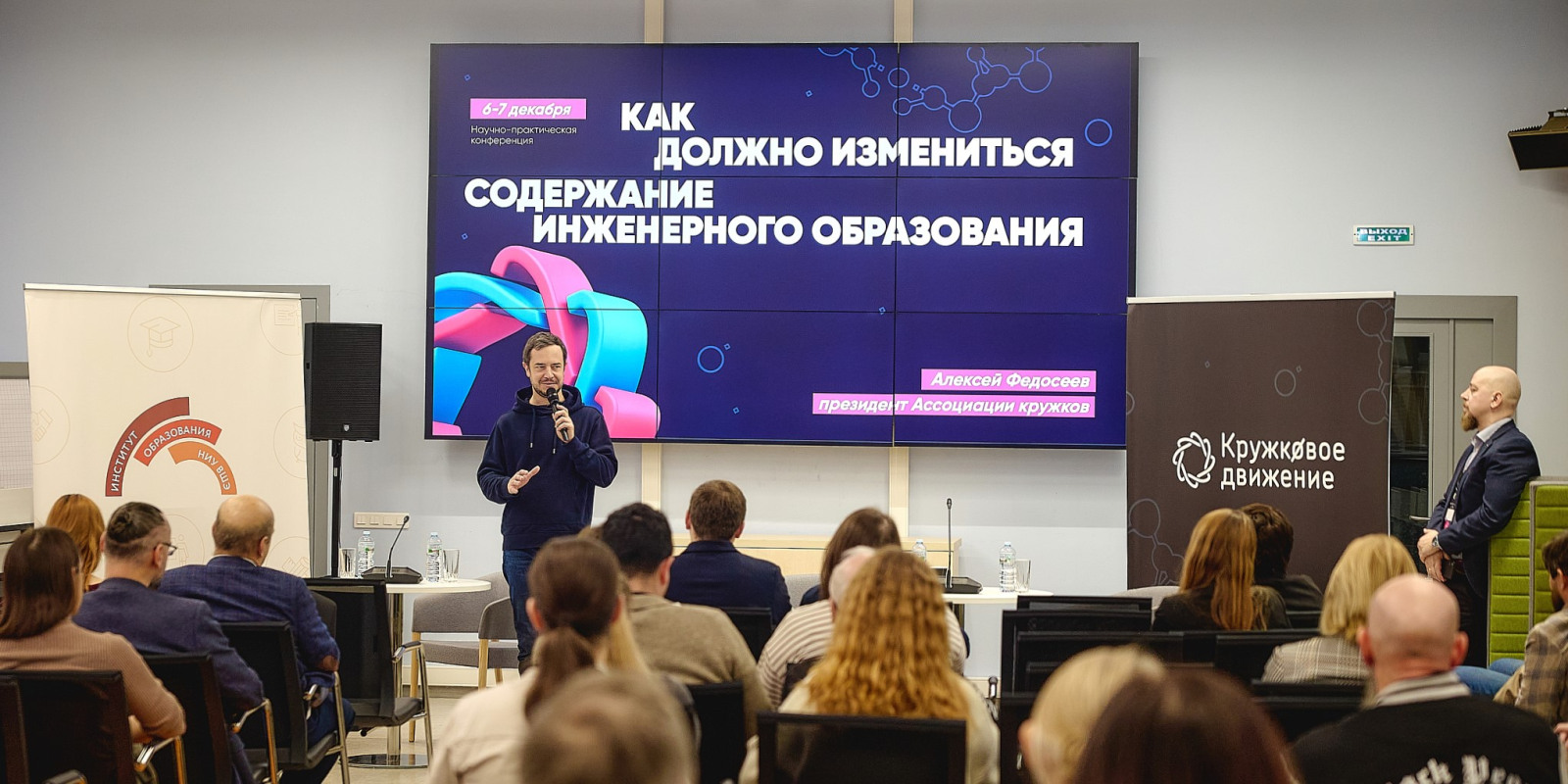 Секцию «Новое содержание инженерного образования» конференции провел президент Ассоциации участников технологических кружков, лидер НКФП «Берлога» Алексей Федосеев. Представив опыт и разработки Кружкового движения НТИ, он задал тон большой дискуссии о подходах к новому инженерному образованию, которые могут повлиять на качество подготовки кадров и укрепление технологического суверенитета России. Сессию дополнили экспертные доклады директора аналитического направления Инфраструктурного центра «Энерджинет» НТИ Игоря Чаусова и генерального директора ООО «Лоретт» Владимира Гершензона об энергетическом и космическом направлениях в дополнительном образовании школьников. Опытом внедрения новых технологических кружков в регионах поделились проректор по развитию Сургутского государственного университета (СурГУ) Валерия Безуевская, директор Лицея №22 «Надежда Сибири» Новосибирска Лариса Потеряева и методист Физико-математической школы Тюмени Кирилл Шабалин.