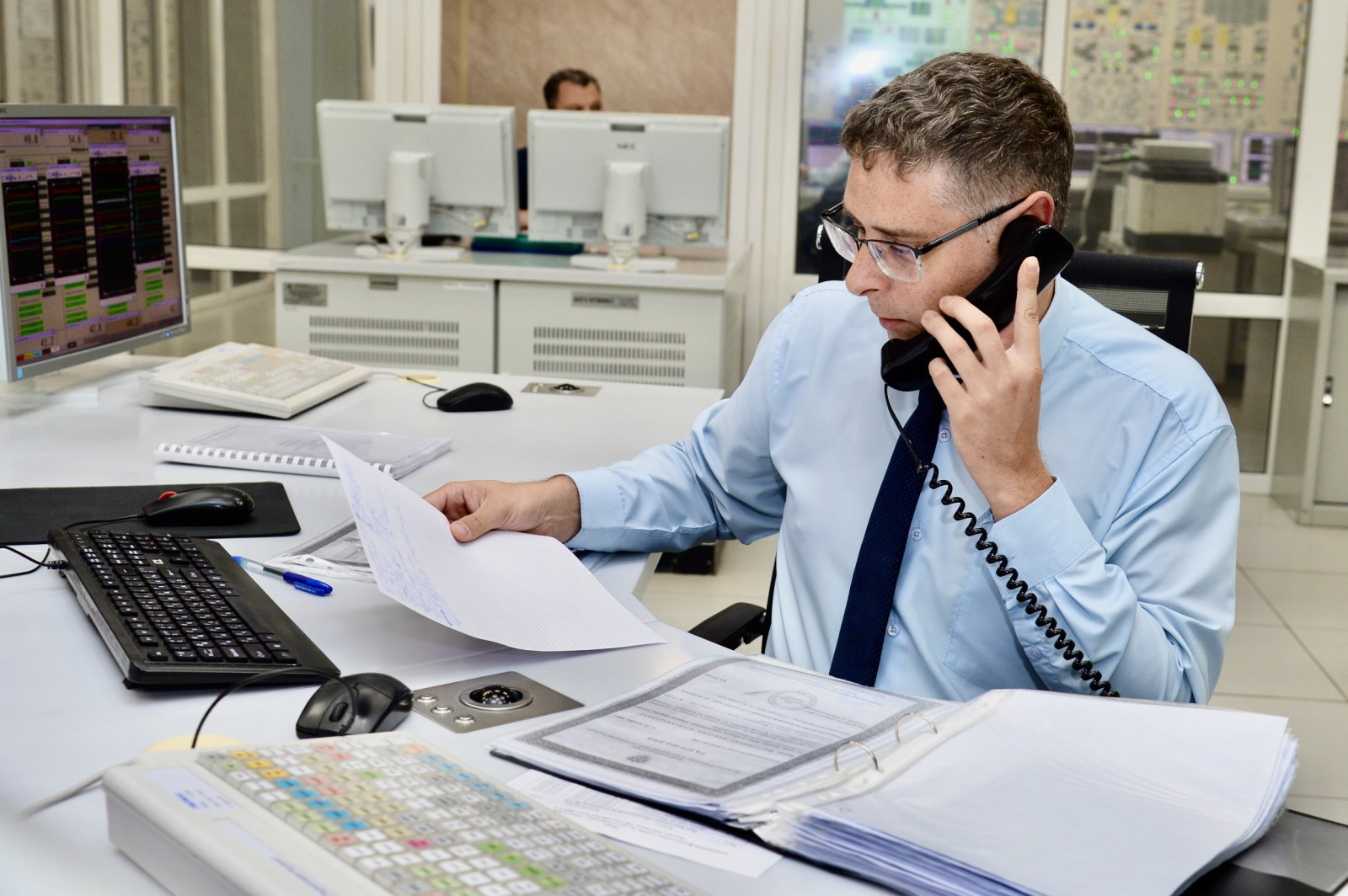 Состязание включало в себя выполнение теоретической части и практического упражнения на полномасштабном тренажере учебно-тренировочного подразделения атомной станции.