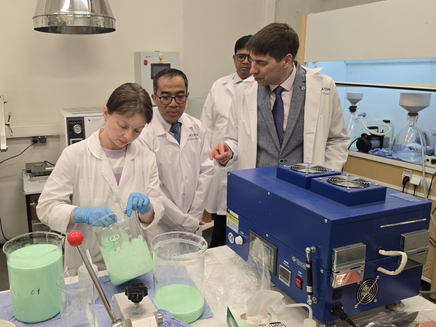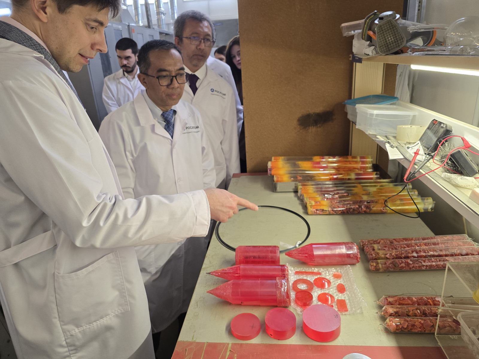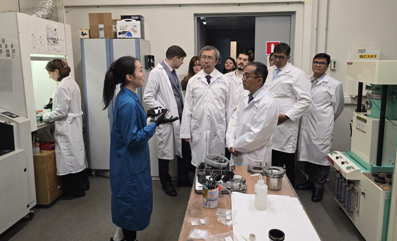 В ходе технического тура делегация ознакомилась с основными научно-исследовательскими и технологическими участками института. Гости посетили ряд ключевых лабораторий, где были продемонстрированы технологии гидрометаллургической переработки минерального сырья, электролитического получения РЗМ (Ce, Nd, Pr, и сплава Nd-Fe), металлтермического восстановления фторидов, хлоридов и оксидов РЗМ, карботермического производства самария (Sm) для Sm-Co магнитов, участок получения сплавов РМ и РЗМ, порошков тугоплавких металлов. Особое внимание уделено технология экстракционного разделения РМ и РЗМ и синтезу высокочистых галогенидных соединений. Также делегации представили современные решения в области переработки литий-ионных аккумуляторов, получения материалов для химических источников тока, выращивания полупроводниковых и сцинтилляционных кристаллов, а также перспективные разработки в области водородной энергетики.