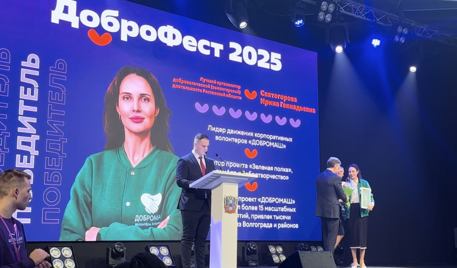 Ведущий специалист завода «Атоммаш» (входит в Машиностроительный дивизион «Росатома») Ирина Святогорова получила звание «Лучший организатор добровольческой (волонтерской) деятельности в Ростовской области» за реализацию проекта по организации цикла социальных и экологических мероприятий в Волгодонске. Региональную премию вручил губернатор Ростовской области Юрий Слюсарь.