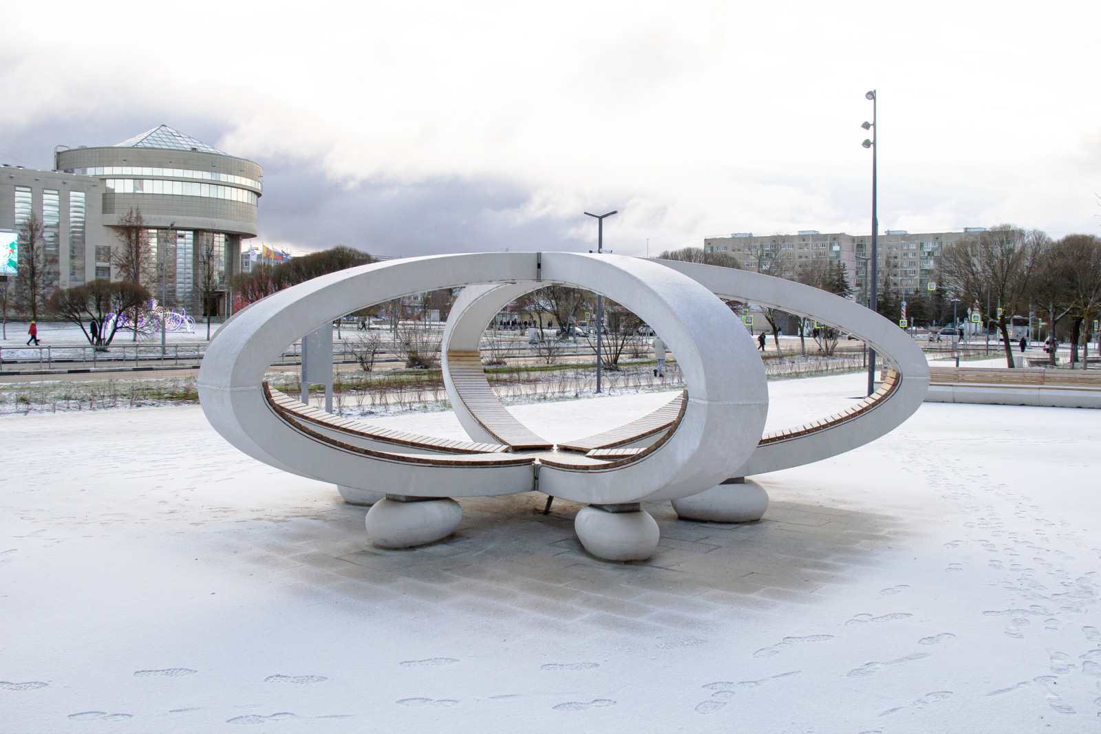 Центральным элементом обновлённого пространства стал арт-объект «Атом» – скамья в форме орбиталей. Такую идею предложили сами жители на проектном семинаре, где разрабатывалась концепция проекта. Также установлен новый остановочный комплекс, дополнительные лавочки и обустроена лестница-амфитеатр.