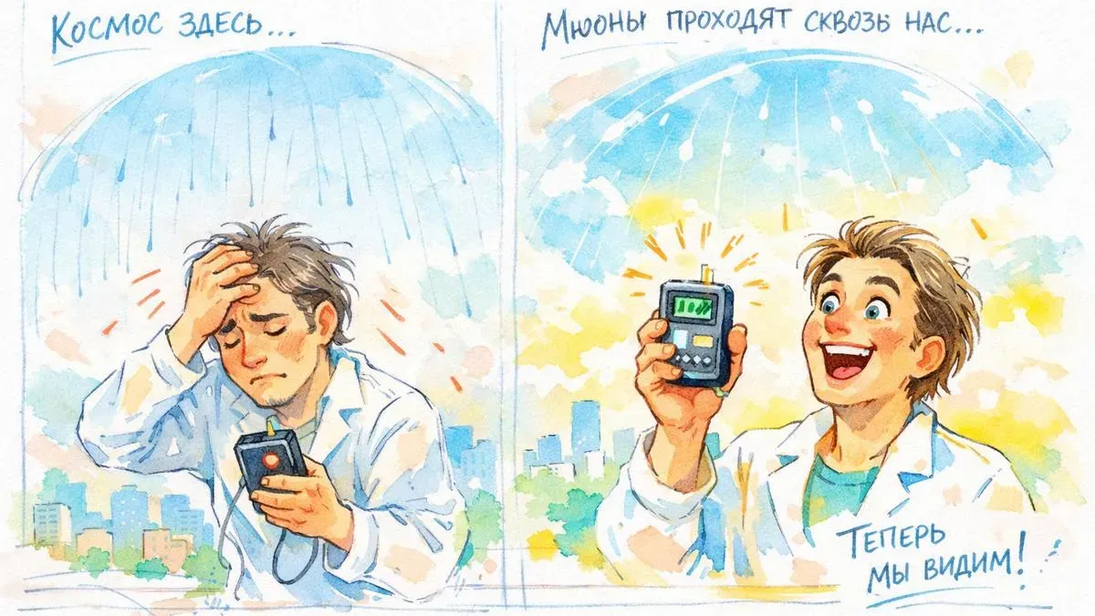 Космические частицы каждый день прошивают атмосферу Земли, и обычно их ловят огромные и дорогие установки. Но физик из Университета Делавэра Спенсер Акса́ни придумал способ сделать такую охоту почти карманной: его детектор CosmicWatch помещается в руке и, по сути, позволяет заниматься “космической физикой” не только крупным лабораториям, но и школьным кружкам.