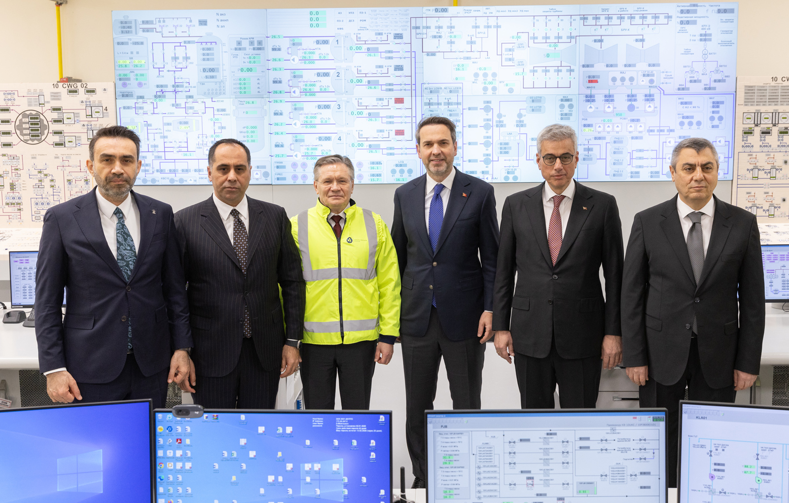 В ходе рабочего визита стороны обсудили текущий статус реализации проекта и ключевые задачи по подготовке к вводу в эксплуатацию блока № 1. Гости ознакомились с ходом работ на основных объектах первого пускового комплекса, в том числе посетили блочный пункт управления первого энергоблока, где в плановом режиме уже работают сотрудники оперативной смены АЭС. Особое внимание в ходе визита было уделено формированию электротехнической инфраструктуры станции. Алексей Лихачёв и Альпарслан Байрактар осмотрели оборудование комплектного распределительного устройства (КРУЭ, ранее на него было подано напряжение от внешней электросети).