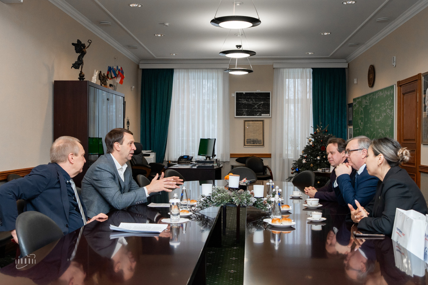 В 2021 году физический факультет, факультет нелинейных процессов и факультет нано- и биомедицинских технологий были объединены в Институт физики СГУ, который наряду с образовательной деятельностью для почти 1000 студентов реализует многопрофильную исследовательскую программу. Эта реорганизация предопределила необходимость актуализации тематической структуры и организационных форм сотрудничества СГУ и ОИЯИ в научной и научно-образовательной сфере, в популяризации современной физики и естественных наук в целом, в первую очередь в молодежной среде, включая учащихся средних учебных заведений, а также в методической поддержке школьных учителей. Именно эта масштабная задача и стала предметом обсуждения на встрече. Особое внимание было уделено перспективам развития взаимовыгодного сотрудничества в фундаментальных физических исследованиях, а в некоторых направлениях и восстановления ранее существовавшего уровня, в синергии с новыми сферами взаимодействия, такими как медицинская физика, применение ядерно-физических методов в науках о жизни, новых материалах, экологии и многих других областях.
