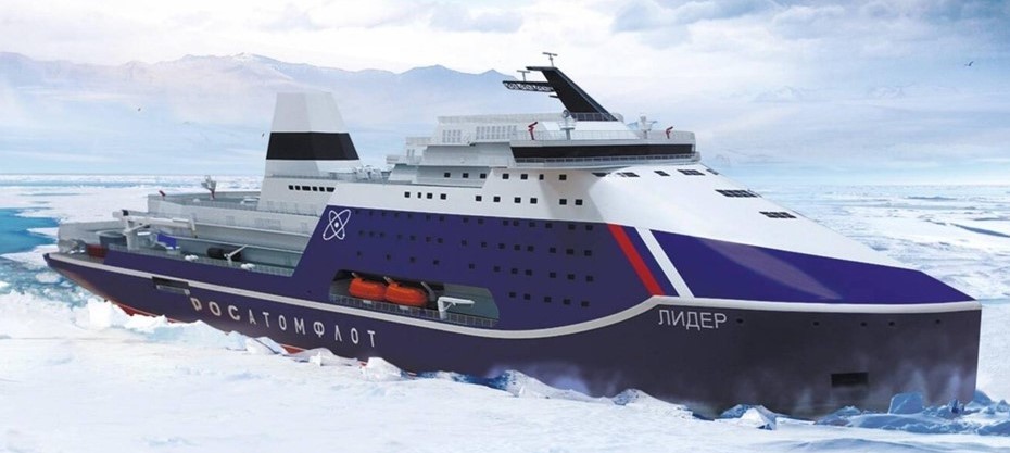 Ледокол "Россия" с силовой установкой 120 МВт должен стать первым атомоходом проекта 10510 "Лидер" и самым мощным в мире. Судно заложено 6 июля 2020 года. Государственный заказчик строительства — госкорпорация "Росатом", застройщик — входящее в корпорацию ФГУП "Атомфлот". Исполнитель контракта — расположенное в Большом Камне Приморского края ООО "Судостроительный комплекс “Звезда”" (управляется консорциумом во главе с "Роснефтью").