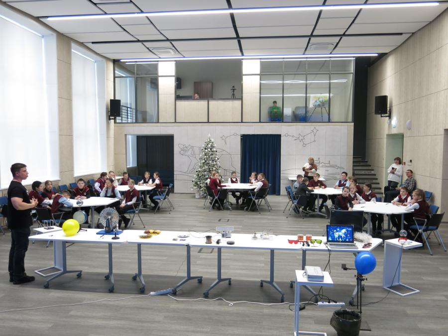 В центре события был мастер-класс «Многоликая энергия», в рамках которого дети познакомились с превращениями энергии в природе и технике. Они увидели, как механическая энергия трения рождает огонь и электрические заряды, заставляющие волосы «вставать дыбом». Школьники узнали, что электричество можно добыть не только из батарейки, но и из обычного лимона или картофеля, и даже «поймать» с помощью магнита и катушки провода. Яркие опыты с электрофорной машиной, демонстрирующие искры и «ионный ветер», показали силу электромагнетизма, а технологичный двигатель Стирлинга наглядно объяснил принципы преобразования тепла в движение. Ребята заглянули и в мир современных технологий, наблюдая, как сконцентрированная энергия лазерного луча прожигает картонку и как с помощью поляризации можно создавать «очки шпиона».