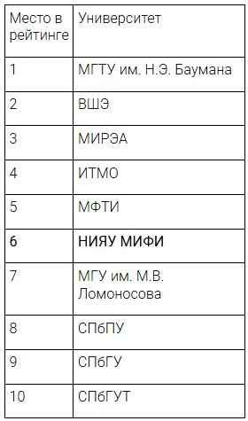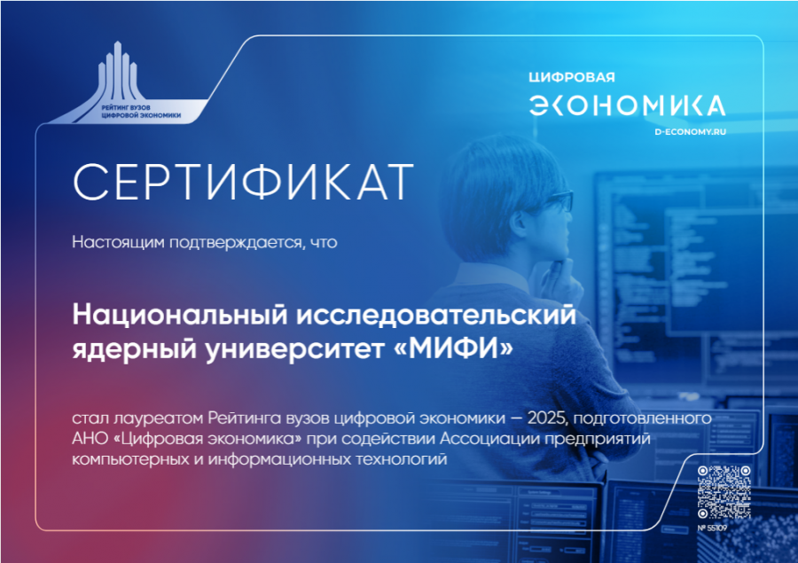 АНО «Цифровая экономика» был опубликован национальный рейтинг(внешняя ссылка) вузов цифровой экономики 2025 г. НИЯУ МИФИ занял 6 место среди университетов Москвы и Санкт-Петербурга.