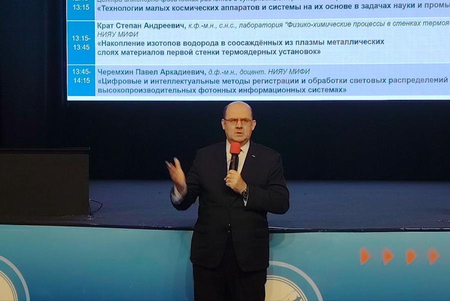 Более подробно об успехах Института ЛаПлаз в своем докладе рассказал его руководитель, проректор МИФИ Андрей Кузнецов. Он напомнил, что Институт был создан в 2017 году как одна из пяти «стратегических академических единиц» МИФИ с фокусом на уникальном сочетании лазерных и плазменных технологий. Изначальная структура включала ядро из нескольких кафедр. Со временем институт расширялся, добавляя новые кафедры (прикладной математики, лазерной техники, молекулярной физики и др.) и создавая совместные подразделения с предприятиями и академическими институтами. Важным этапом стало обретение «дома» — Научно-лабораторного корпуса (НЛК), который превратился в центр научно-образовательной деятельности.