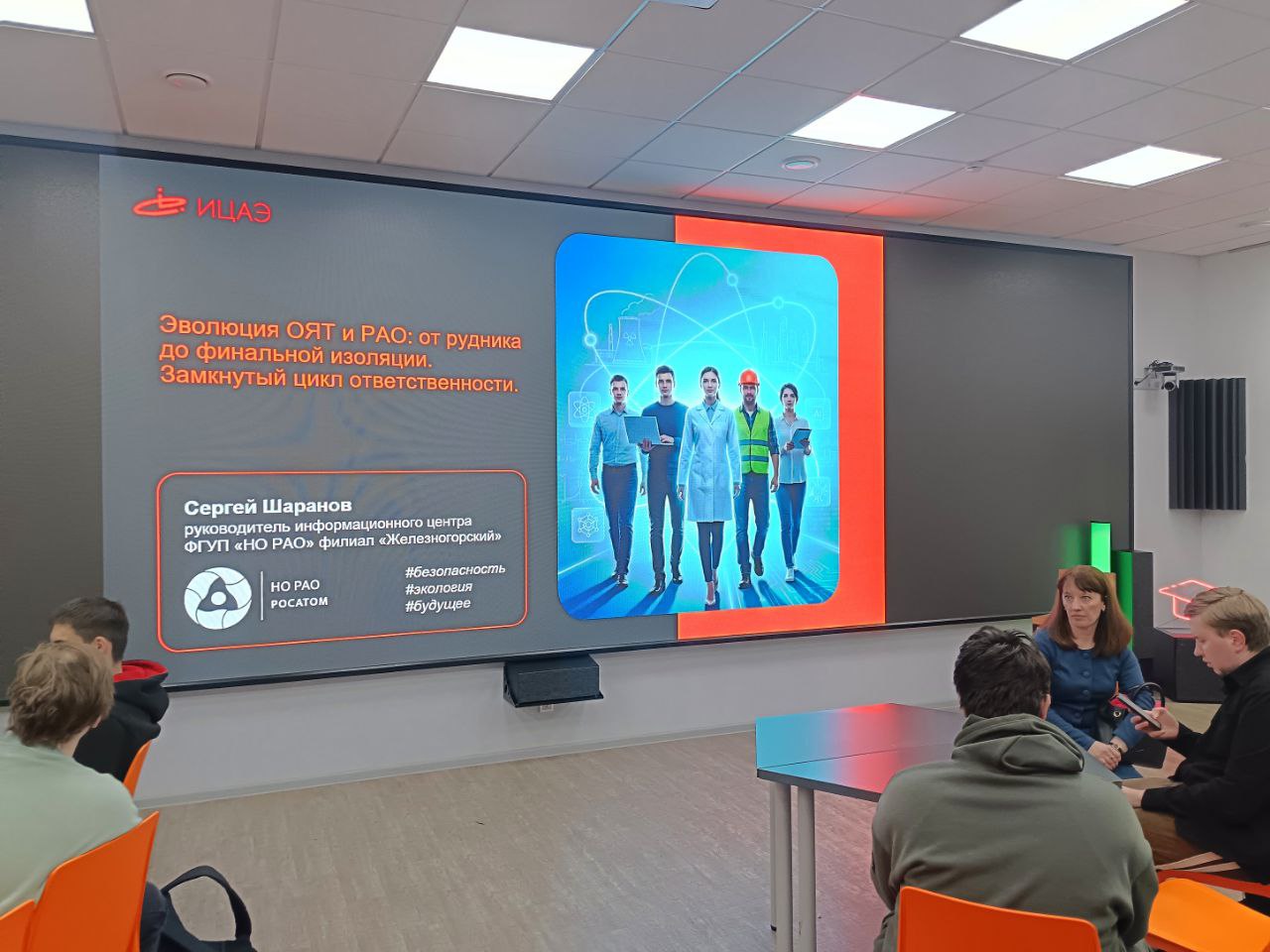 В Красноярске мероприятие «ИЦАЭ OPEN: экология» было посвящено взаимосвязи бытовой экологии и высокотехнологичных решений в сфере радиационной безопасности. Руководитель информационного центра ФГУП «НО РАО» в Железногорске Сергей Шаранов выступил с лекцией «Эволюция ОЯТ и РАО: от рудника до финальной изоляции. Замкнутый цикл ответственности». В своём выступлении он детально осветил полный жизненный цикл материалов в атомной отрасли, уделив особое внимание созданию объектов окончательной изоляции РАО и подчеркнув роль государственной системы регулирования, гарантирующей безопасность на всех этапах.