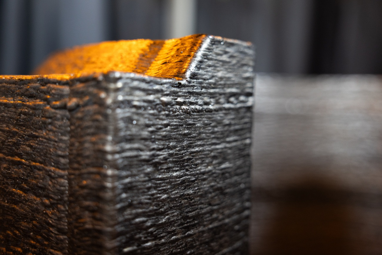 В основе технологии электродугового выращивания из металлической проволоки – послойный перенос расплавленного металла. Он плавится за счет энергии горения электрической дуги. Все движения выполняет промышленный робот, движущийся по специально созданной программе. Специалисты программируют движения, учитывая влияние скорости подачи проволоки, мощность дуги, состав металла проволоки и т.д. на характеристики будущей детали. Для печати детали ширина печатного слоя до увеличена 201 мм. Такой массивный слой неминуемо приводит к существенным деформациям изделия относительно трехмерной модели. Инженеры разработали особый подход к печати для компенсации этой особенности.