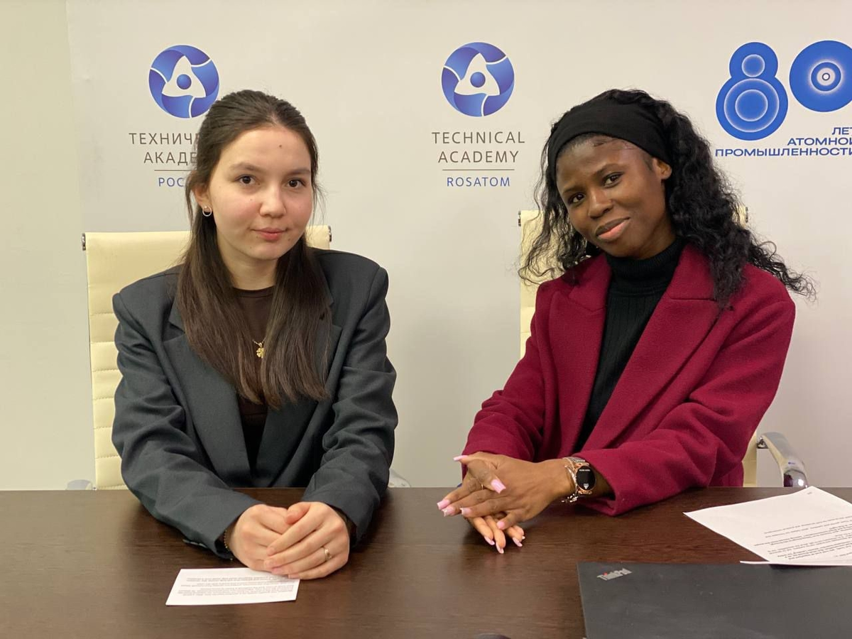 Дженнет Джорева из Туркменистана и Фрим Понг Иви Квабеа из Республики Гана присутствовали на первой очной встрече амбассадоров, которая прошла на базе Технической академии "Росатома" в Москве. Девушки активно включились в мастер-классы по ораторскому искусству и развитию коммуникативных навыков.