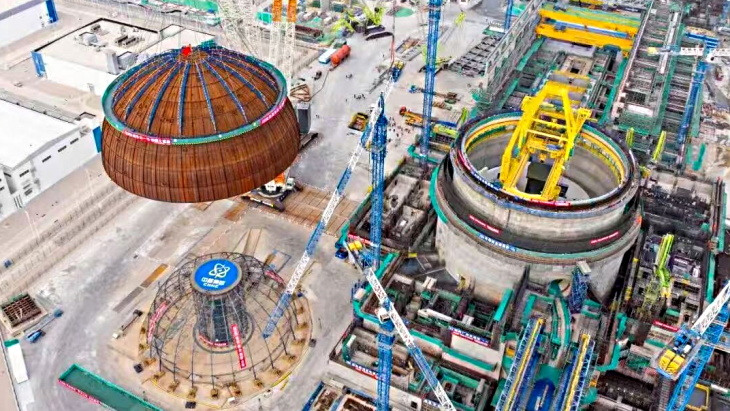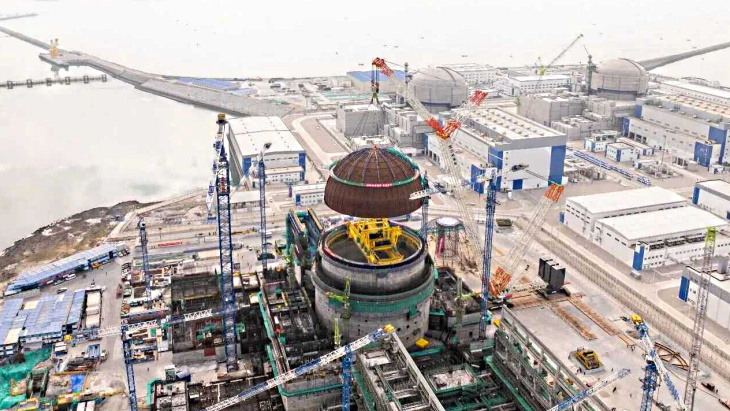 Как уточняется в заявлении корпорации, после "серии высокоточных маневров, включая поднятие крюка, траверсирование и регулировку", стальной внутренний купол для защитной оболочки энергоблока № 3 Чжанчжоу диаметром 45 метров, высотой почти 14 метров и весом более 370 тонн был установлен поверх стен здания. Сооружение защитной оболочки было проведено с помощью гусеничного крана грузоподъемностью 3200 тонн.