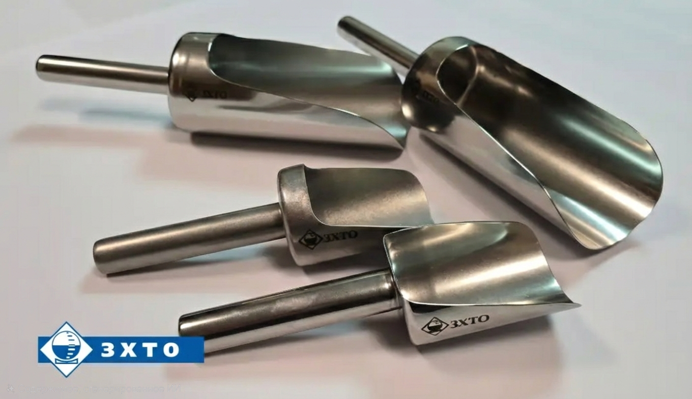 Совки делают из стали AISI 316L. Благодаря цельносварной конструкции здесь нет стыков и неровностей — нечему забиваться грязью или задерживать частицы продукта. Изделие спокойно выдерживает автоклавирование и полностью соответствует стандартам GMP.