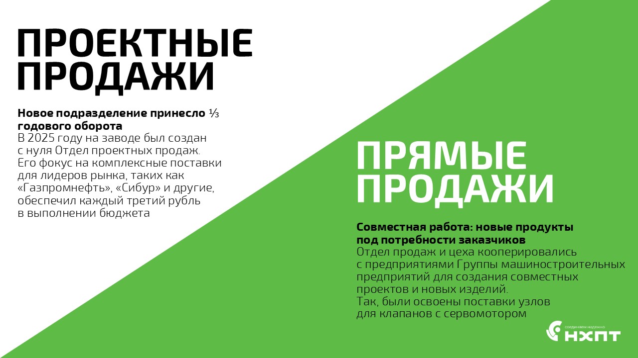 Существенный вклад в финансовые показатели внес созданный в 2025 году «Отдел проектных продаж». Подразделение обеспечило треть годовой выручки за счет комплексных поставок в адрес крупнейших нефтегазовых и нефтехимических компаний, включая «Газпромнефть» и «Сибур» и другие.