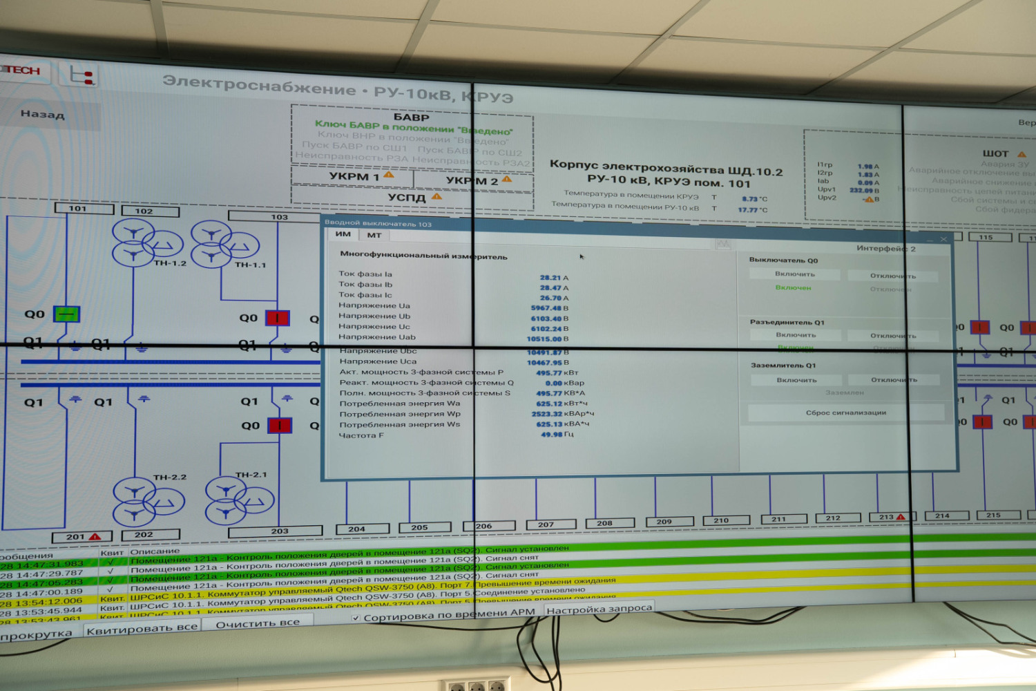 Разработанная система управления и диспетчеризации охватывает всю разветвлённую инженерную инфраструктуру комплекса – электроснабжение, тепло-, холодо- и водоснабжение, системы вентиляции и кондиционирования, термостабилизации, системы контроля доступа и видеонаблюдения, системы радиационной и противопожарной безопасности.