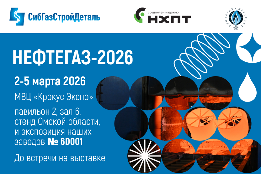 Завод «СибГазСтройДеталь» примет участие в 25-й Международной выставке «Нефтегаз-2026», которая состоится со 2 по 5 марта в МВЦ «Крокус Экспо» (г. Москва).