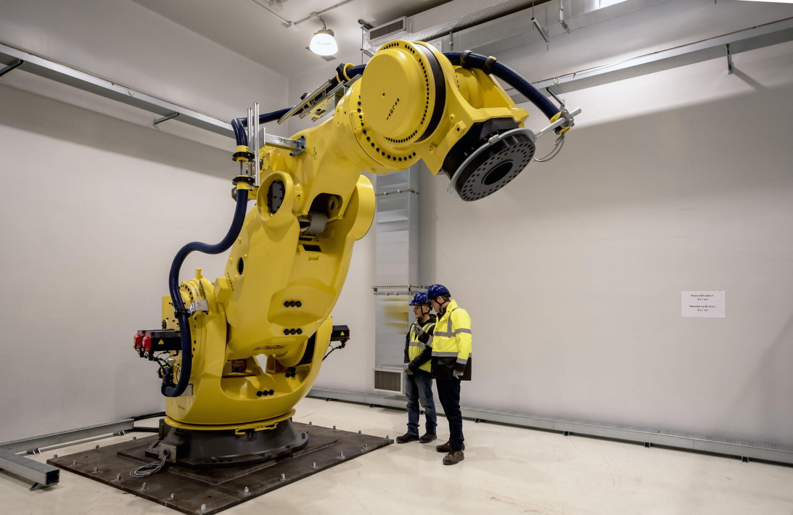 Среди промышленных роботов, чьи конструкции будут оптимизированы по итогам испытаний на "Годзилле", публикация отмечает внутрикорпусной башенный кран, произведенный и поставленный французской инжиниринговой компанией CNIM Systemes Industriels.