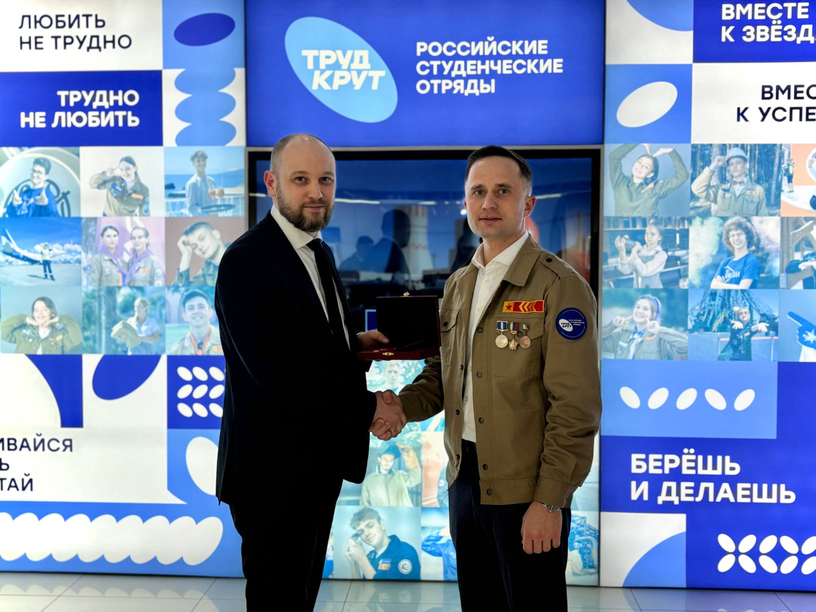 Ведомственная награда вручена за значительный вклад в развитие студенческих строительных отрядов и поддержку молодёжного кадрового движения в строительной отрасли.