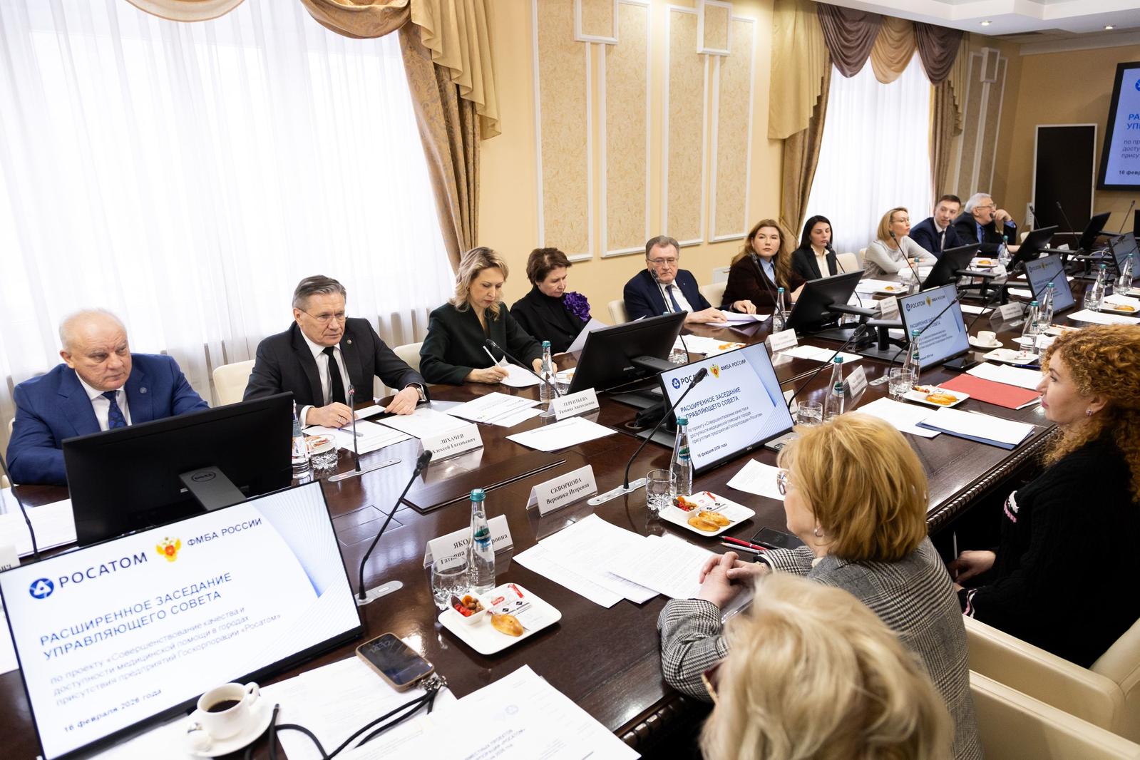 В ходе обсуждения было отмечено, что для медицинского обеспечения сотрудников госкорпорации используются 36 комплексных центров здоровья работающих, 19 из которых расположены непосредственно в «атомных» городах. ФМБА России не только увеличило их количество, но и совершенствует качественное наполнение, интегрируя самые современные направления: когнитивное и психоэмоциональное здоровье, охрану репродуктивной системы и медицину долголетия. За последние годы было открыто 11 сосудистых центров и 10 центров амбулаторной онкологической помощи; созданы координационные центры по онкологии и сердечно-сосудистым заболеваниям.