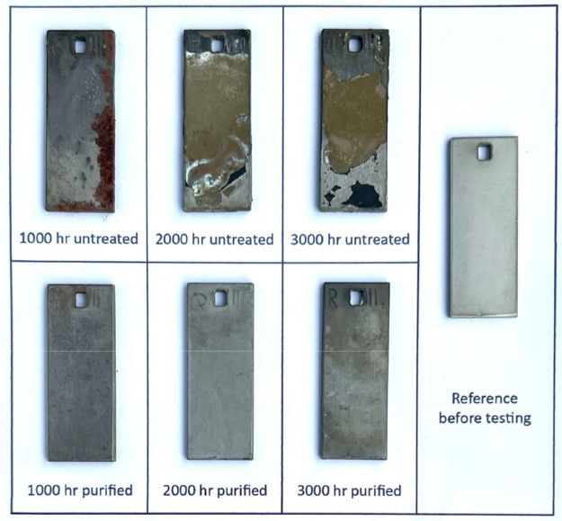 Исследователи провели долгосрочные коррозионные испытания нержавеющей стали 316L в очищенных и необработанных расплавленных солях (FLiNaK и LiThF) при температурах до 700°C. Результаты показали, что необработанные соли, содержащие влагу и оксиды, вызывали сильную коррозию с потерей металла, деградацией поверхности и ослаблением структуры всего за 1000 часов. Однако в очищенных солях, из которых удалены примеси, коррозия была незначительной даже после 3000 часов. Сталь сохранила свою целостность, и на ее поверхности образовался лишь тонкий защитный слой карбида хрома.