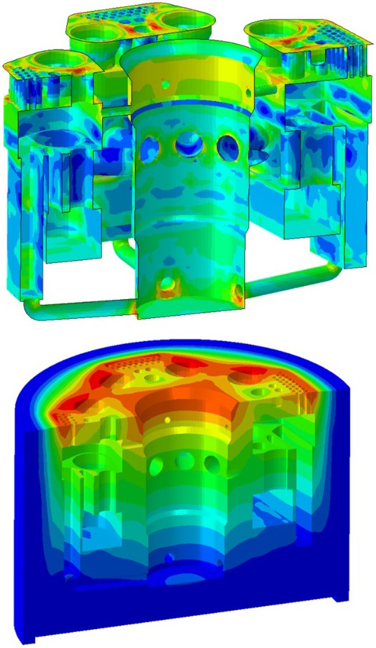 При проектировании атомных станций традиционно используются консервативные упрощенные математические модели и подходы, которые были разработаны в условиях недостаточного развития численных методов описания нелинейных физически связанных процессов. Это вынуждало вводить значительные коэффициенты запаса, например, при выборе толщин оболочек, расчете максимальных нагрузок и диапазонов условий эксплуатации и пр. Инженеры СПбПУ развивают и внедряют в процесс проектирования АЭС передовые численные методы и подходы на основе современных программ конечно-элементного анализа, что позволяет точно и эффективно с вычислительной точки зрения описывать сложные мультифизические процессы, протекающие при эксплуатации АЭС.