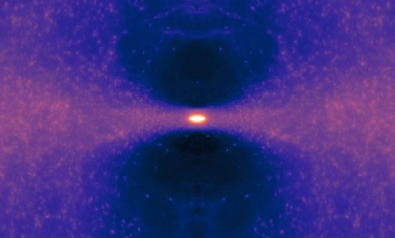 Результаты моделирования сошлись с реальностью только при соблюдении строго определенного условия: масса в нашем космическом окружении должна быть распределена в виде гигантского листа, над и под которым простираются пустоты. Такая архитектура идеально объясняет все три загадки. Плоский лист темной материи неизбежно привел бы к формированию плоского Местного Листа из видимых галактик, поскольку распределение светящейся материи следует за распределением темной. Гравитационное притяжение этого массивного листа, в свою очередь, вытянуло бы вещество из прилегающих областей, создавая по обе стороны от него пустоты — тот самый Местный Пузырь. Наконец, сама геометрия плоской структуры ослабляет гравитационное притяжение по направлению к центру, где находится Местная группа, позволяя внешним галактикам расширяться более равномерно, что и создает эффект «спокойного потока Хаббла».
