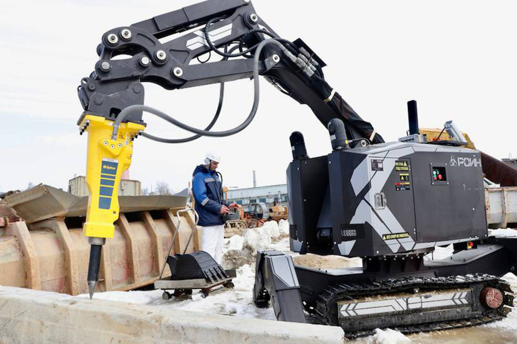 В день 80-летия атомной промышленности служба экологии получила и спустила на воду Иртяша универсальный амфибийный комплекс. Машина с помощью сменного комплекта рабочих устройств – ковша, грейфера, погружного насоса с фрезерным рыхлителем – способна провести дноуглубительные работы, очистить водоём, добывать ил и песок.