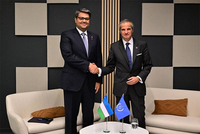 Директор Агентства по атомной энергии Узбекистана Азим Ахмедхаджаев провёл двустороннюю встречу с Генеральным директором МАГАТЭ Рафаэлем Гросси. Стороны обсудили текущее состояние сотрудничества и реализацию совместной «Дорожной карты» по углублению взаимодействия в сфере мирного использования атомной энергии.
