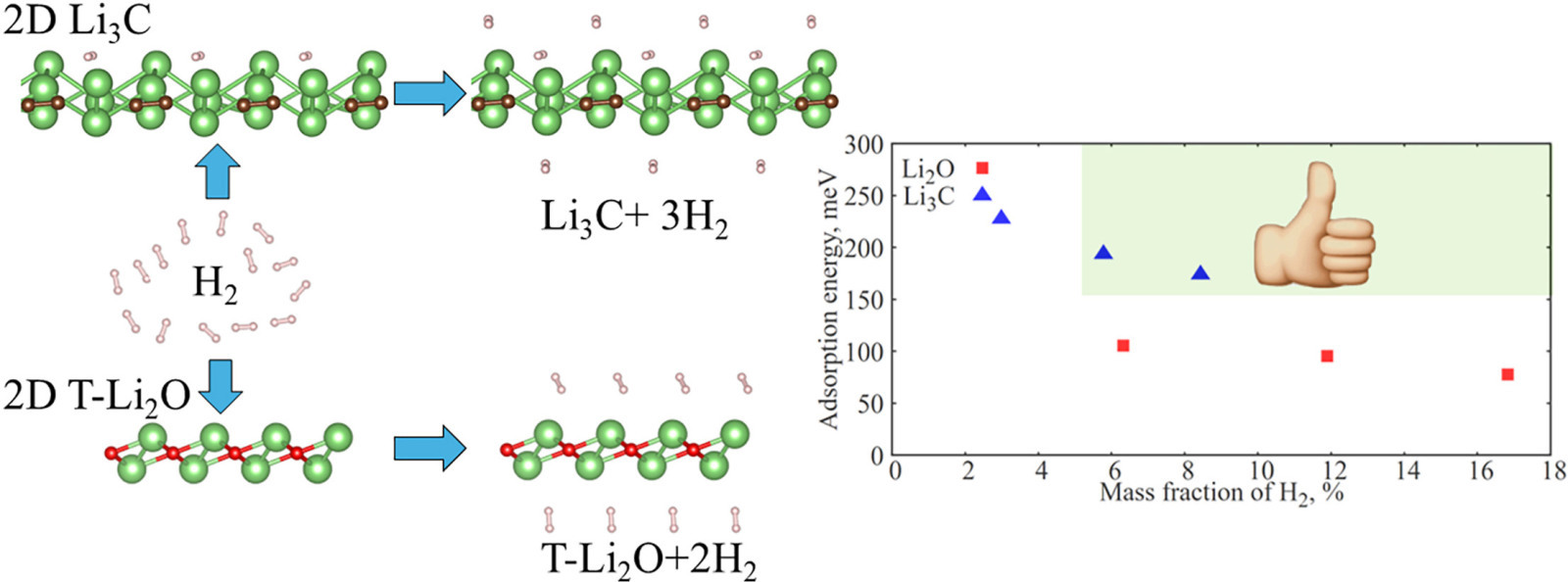 Когда надежда почти угасла, на сцену вышел карбид лития — Li₃C. Его атомарная структура представляет собой плоскую решетку, где атомы углерода окружены атомами лития. И тут случилось то, чего ждали: молекулы водорода прилипали с нужной силой — не слишком слабо, чтобы не улетучиться, и не слишком крепко, чтобы их можно было потом использовать как топливо.
