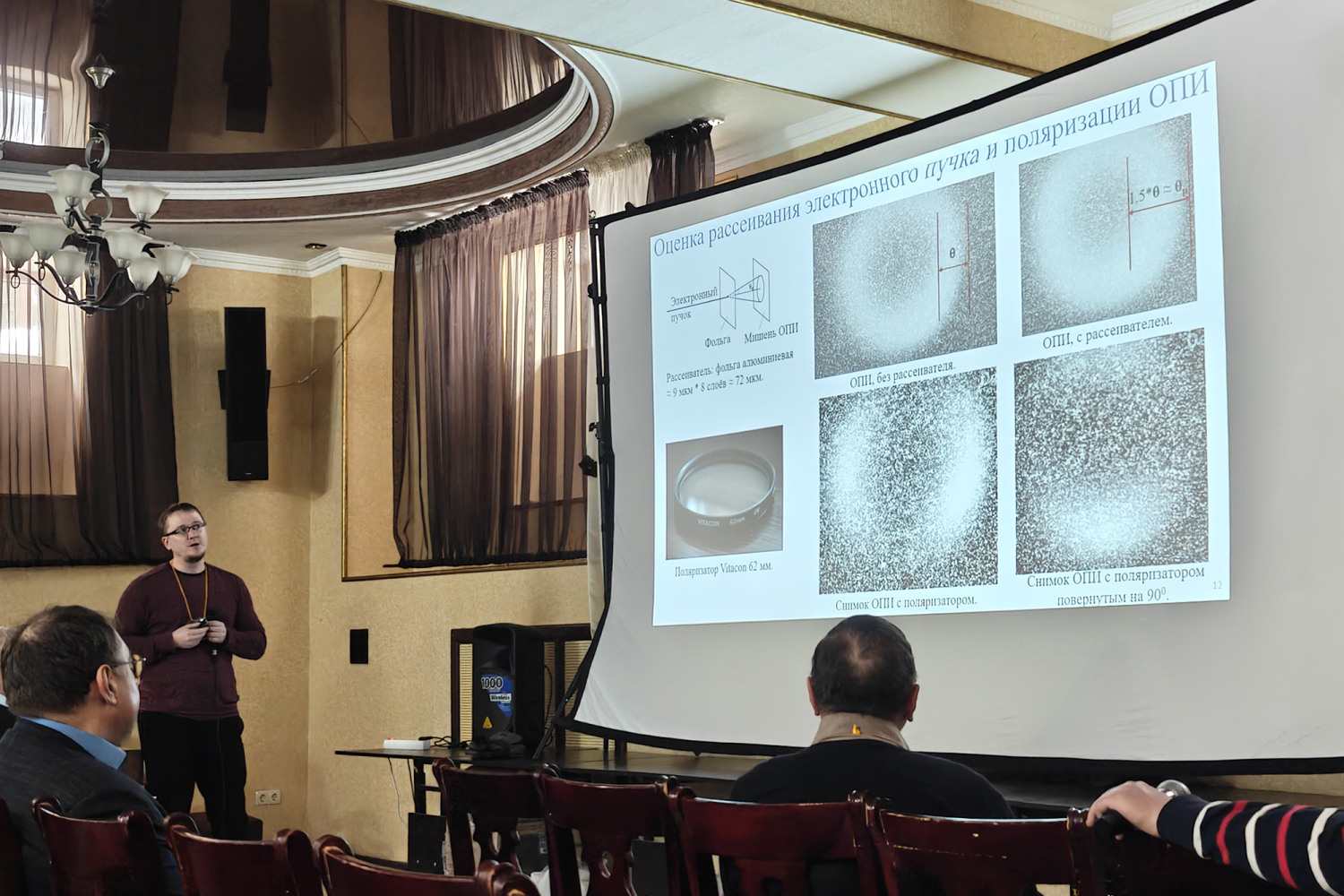Старший инженер НЭОТМПП Андрей Сафонов представил на стендовой сессии результаты разработки и испытаний прототипов нейтронных детекторов на основе изотопа бора-10 (10B). Один из них, использующий микроканальные пластины с покрытием 10B, предназначен для высокоразрешающей нейтронной визуализации. Другой — на базе сцинтиллятора с наночастицами 10B — служит для регистрации и мониторинга нейтронных полей. Испытания приборов успешно прошли на установке ИРЕН в ЛНФ ОИЯИ.
