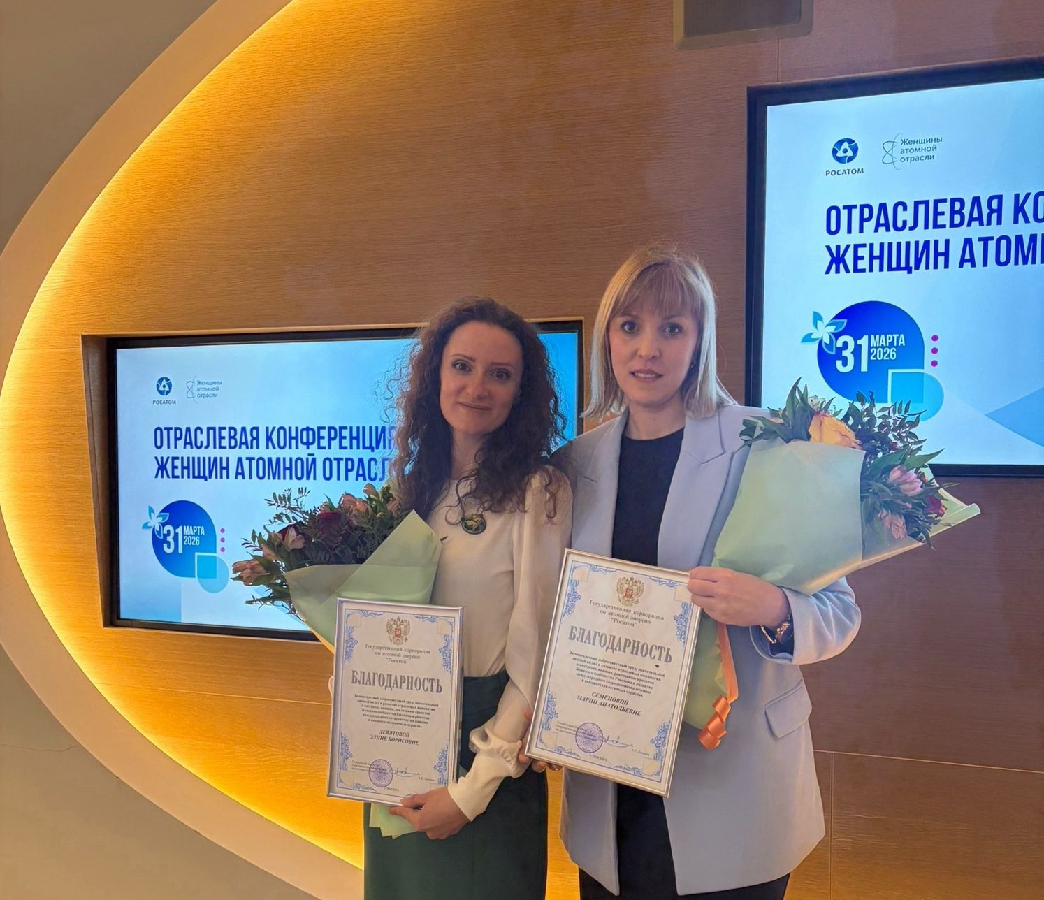 Особой гордостью стало признание работы женского городского сообщества Снежинска на уровне Госкорпорации. Мария и Элина награждены благодарностями генерального директора Алексея Лихачёва за развитие отраслевых инициатив в интересах женщин. «Это не просто награда, – это подтверждение того, что движение развивается в верном направлении, что голос женщин в атомной отрасли становится всё громче, увереннее и значимее», – поделились они.
