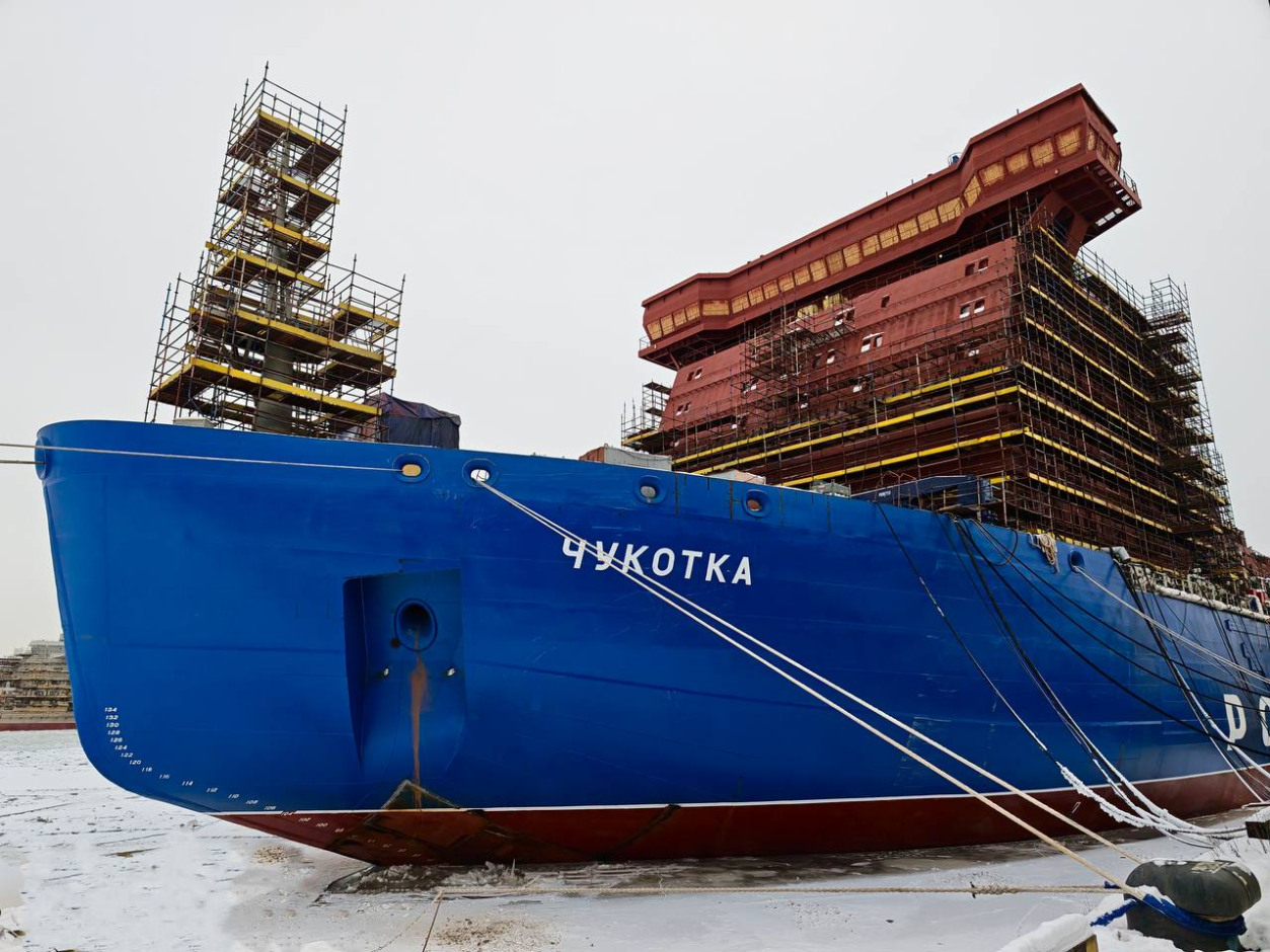 Универсальный атомный ледокол «Чукотка» — пятое судно проекта 22220, которое строится на Балтийском заводе ОСК по заказу госкорпорации «Росатом». Ледокол заложен 16 декабря 2020 года, спущен на воду 6 ноября 2024 года.