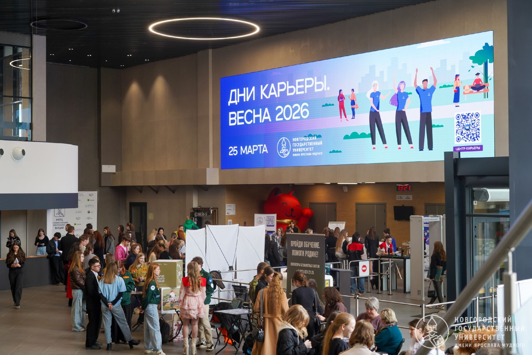 25 марта прошла ярмарка вакансий в Великом Новгороде. Партнер НИЦ «Курчатовский институт» - ПИЯФ - Новгородский государственный университет имени Ярослава Мудрого (НовГУ) - пригласил работодателей, студентов и абитуриентов для общения на единой площадке. Более 85 работодателей, включая наш Институт, предложили студентам и выпускникам места для прохождения практики и трудоустройства.