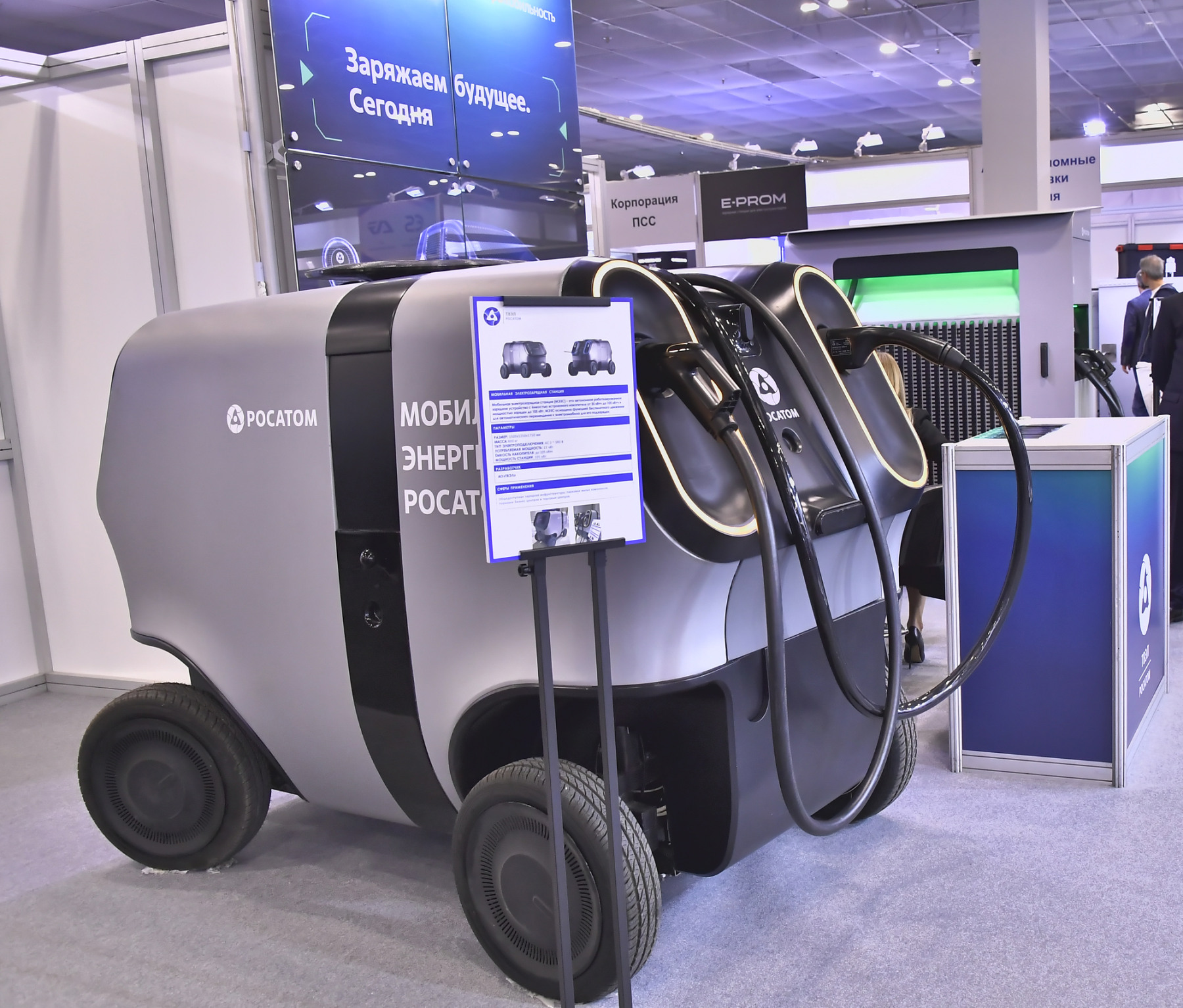 «Мобильная электрозарядная станция позволяет быстро и гибко покрывать незакрытые зоны зарядной инфраструктуры при дефиците свободной электросетевой мощности. Это инструмент оперативного расширения сети электрозарядных станций, повышения проникновения на рынок и незаменимое решение в зонах ограниченного парковочного пространства. Шасси с колесами автомобильного типа позволяет маневрировать на закрытых паркингах, успешно преодолевая уклоны, неровности в любую погоду со скоростью до 10 км/ч. Емкость батареи: у пилотных образцов - 35 кВт*ч, в серии - до 105 кВт*ч- достаточна, чтобы зарядить севший аккумулятор электромобиля до работоспособного состояния или полностью», - прокомментировал директор бизнес-направления «Электромобильность» АО «ТВЭЛ» Александр Бухвалов.