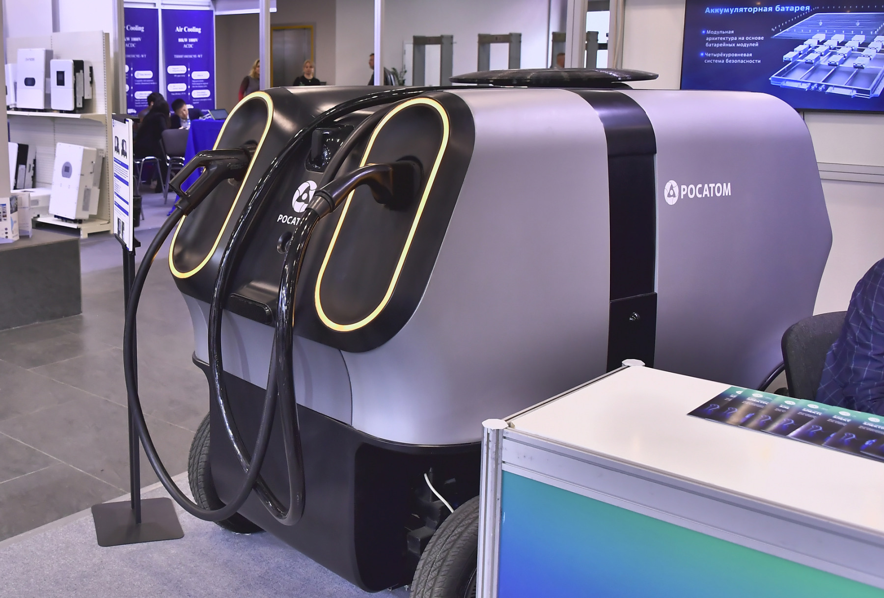 На международной выставке и форуме «Энергосбережение, зеленая энергетика и электротранспорт» Renwex-2026 Топливный дивизион «Росатома» (управляющая компания – АО «ТВЭЛ») представил инновационный продукт для электротранспорта - мобильную электрозарядную станцию.