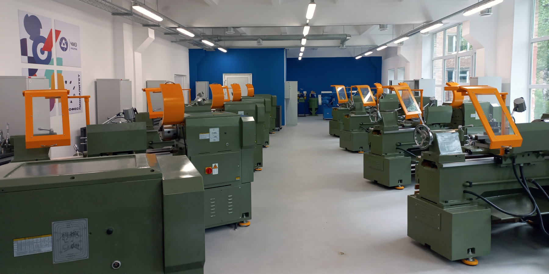 В обновленном корпусе разместился весь станочный парк колледжа – это современные токарные и фрезерные станки с ЧПУ. На этом оборудовании студенты осваивают практические навыки по востребованным рабочим специальностям. Производственная база полностью идентична тому, что используется на Чепецком механическом заводе. Мастерами производственного обучения выступают действующие сотрудники предприятия. На втором этаже корпуса организована лаборатория компьютерного проектирования, где студенты могут в виртуальном режиме моделировать гидрометаллургические процессы и технологические процессы обработки металлов давлением. Здесь же расположена слесарная мастерская. На третьем этаже работает центр компетенций «Мехатроника», ранее оснащенный оборудованием при поддержке Чепецкого механического завода. В лаборатории студенты изучают пневматику, гидравлику и электромонтаж. На безе мастерских проводятся региональные и отраслевые чемпионаты профессионального мастерства.